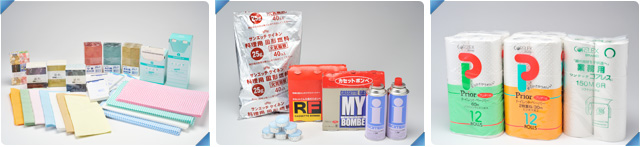 業務用トイレットペーパーから会計伝票までさまざまな商品をラインナップ。